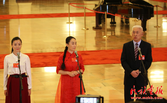 中國共產(chǎn)黨第十九次全國代表大會(huì)代表徐俊在北京人民大會(huì)堂接受采訪時(shí)發(fā)言( 滕俊 攝影)