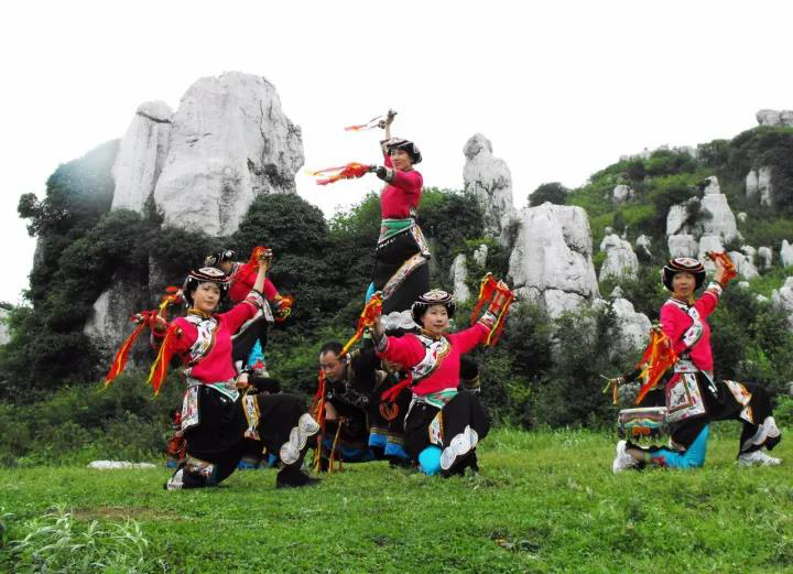 “鈴鐺舞”主要流傳在烏蒙山區(qū)的彝族聚居區(qū)。彝語(yǔ)稱(chēng)“懇合唄”?!皯┖稀?,指祭祀禮儀中唱經(jīng)文的歌,“唄”即跳的意思,又稱(chēng)“跳腳”、“抄子舞”。合起來(lái)就是通過(guò)舞蹈表演的形式加上歌師的訴唱來(lái)祭奠死者的意思,是彝族先民在祭祀教化活動(dòng)時(shí)按倫理輩分和長(zhǎng)次舉行高歌創(chuàng)業(yè)公德的騎馬戰(zhàn)狀舞蹈。