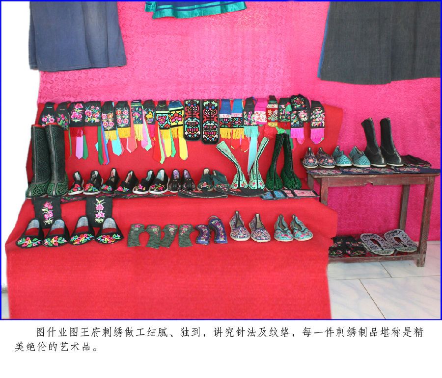 圖什業(yè)圖王府服飾包括:服裝、服飾、鞋帽及馬匹裝飾等。或質(zhì)樸、清新,或漂亮、華貴,或錯落有致;既有山水,又有花鳥,形象逼真,惟妙惟肖,色彩協(xié)調(diào),圖案精美;其做工細(xì)膩獨到,講究針法及紋路,每一件服飾制品堪稱是精美別致的藝術(shù)品。