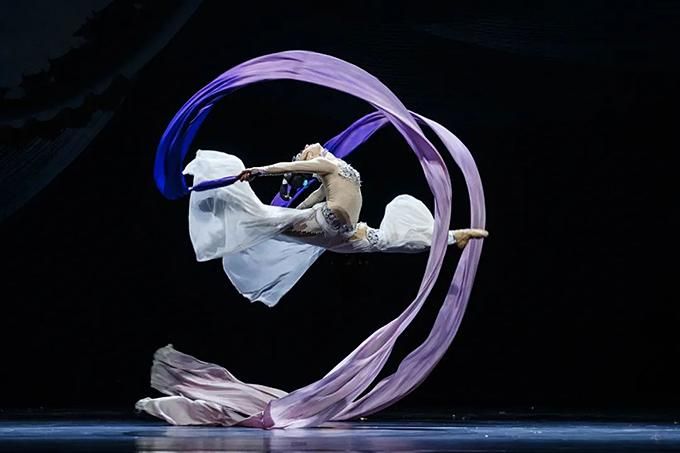 舞劇《傳絲公主》以蠶絲為戲劇元素,以蠶桑女寧兒與于闐王子尉遲的愛情為外在線索,以盛唐時(shí)中原與西域的交流往來為隱伏線索,將凄美的愛情故事與壯闊的家國情懷交織在一起,引領(lǐng)觀眾穿越到大唐盛世,感受繁興的絲路文化和豐富多彩的民族風(fēng)情。