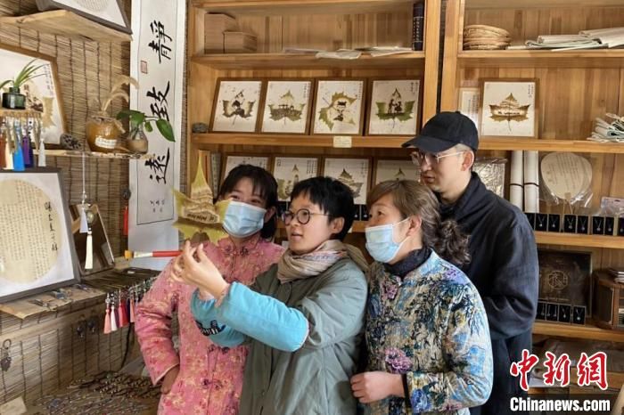 龍玉玉在她的葉雕藝術(shù)館教授葉雕技藝?!∈茉L(fǎng)者供圖