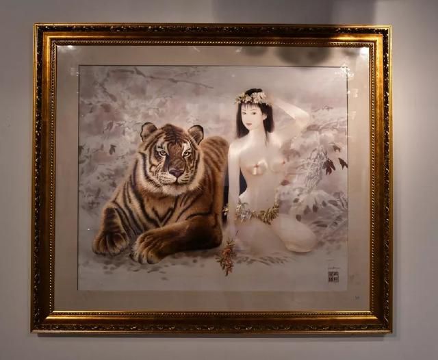 本幅繡品首次成功地將人物肖像圖方式引入傳統(tǒng)走獸刺繡之中。作者用細(xì)膩的針?lè)?xì)致精準(zhǔn)地繡出了老虎根根可辨的絨毛和少女光滑細(xì)膩的皮膚,形成極大的反差,極具視覺(jué)沖擊力。