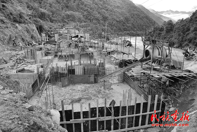 在依山而建安居房群落前獨龍族村民在翻挖、平整水田