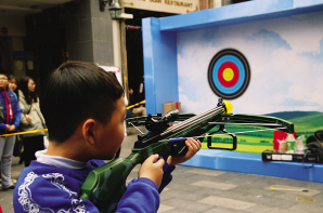 小朋友在少數(shù)民族體育花會(huì)上體驗(yàn)射弩。(廣州市民宗局提供)