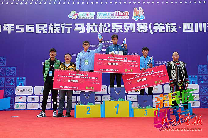 民馬(羌族?四川理縣站)是四川省首場民族特色馬拉松賽事,也是羌年第一跑。比賽吸引了全國17個(gè)省市、9個(gè)民族的兩千多名參賽選手,“親民族,跑民馬”,一起歡度羌年,了解羌族獨(dú)特的民俗文化。選手們從東方古堡桃坪羌寨出發(fā),經(jīng)過激烈的角逐,最終沙正友、洪躍、馬昭尖分別以1小時(shí)08分19秒、1小時(shí)10分31秒、1小時(shí)10分38秒的成績獲得男子半程馬拉松前3名,李春霞、谷錦錦、潘素芳分別1小時(shí)26分2秒、1小時(shí)26分24秒、1小時(shí)30分11秒的成績獲得女子半程馬拉松前3名。