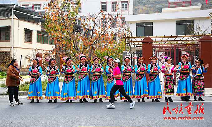 運(yùn)動(dòng)員們在奔跑中感受熱熱鬧鬧的羌?xì)v年,體驗(yàn)節(jié)奏明快的沙朗舞,近距離接觸古樸厚重的羌族文化。