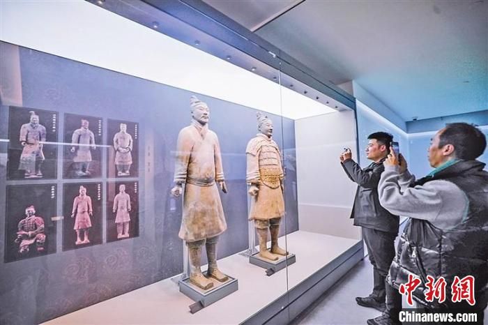 “除了秦始皇帝陵博物院,我們還向浙江省博物館、浙江省考古所、安吉縣博物館借了展品?!笨掳岔槺硎?,游客來到這里,既能看到兵馬俑等文物,也能通過圖文并茂形式了解秦磚、漢瓦、兵器等知識,到了二樓還能享受與兵馬俑有關(guān)的沉浸式互動體驗(yàn)。