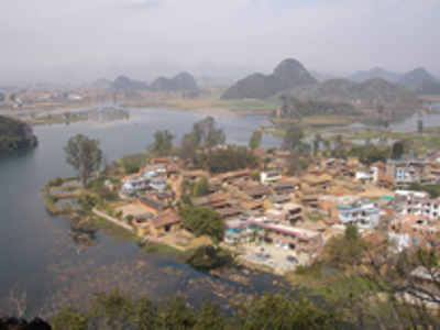 在一次學(xué)術(shù)會(huì)議上,筆者請(qǐng)教了首倡并主導(dǎo)“民族文化生態(tài)村”試點(diǎn)建設(shè)的尹紹亭教授,得知在他們首期的五個(gè)試點(diǎn)村落建設(shè)中,仙人洞村是比較成功的,于是在本項(xiàng)目的調(diào)查中,仙人洞村成為重點(diǎn)考察的對(duì)象之一。“仙人洞彝族文化生態(tài)村”位于云南丘北縣城西北16公里的普者黑湖畔?!捌照吆凇睘楫?dāng)?shù)匾妥迦瞿嵴Z(yǔ),意為“魚蝦多的湖潭”。普者黑實(shí)際是由眾多湖泊、河流構(gòu)成,總面積達(dá)165平方公里,已經(jīng)開發(fā)成由5個(gè)景區(qū)、56個(gè)景點(diǎn)組成的滇東南國(guó)家級(jí)著名旅游景區(qū)。