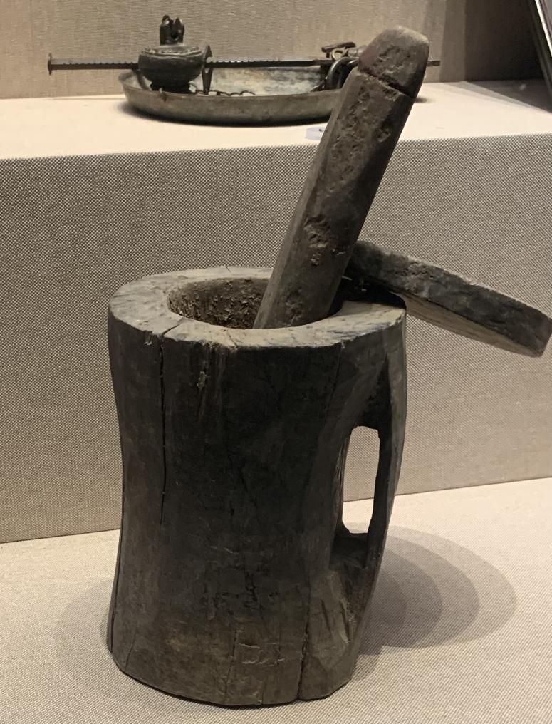 上為藥秤,下為木鐳缽(許覬佳攝于貴州省民族博物館)
