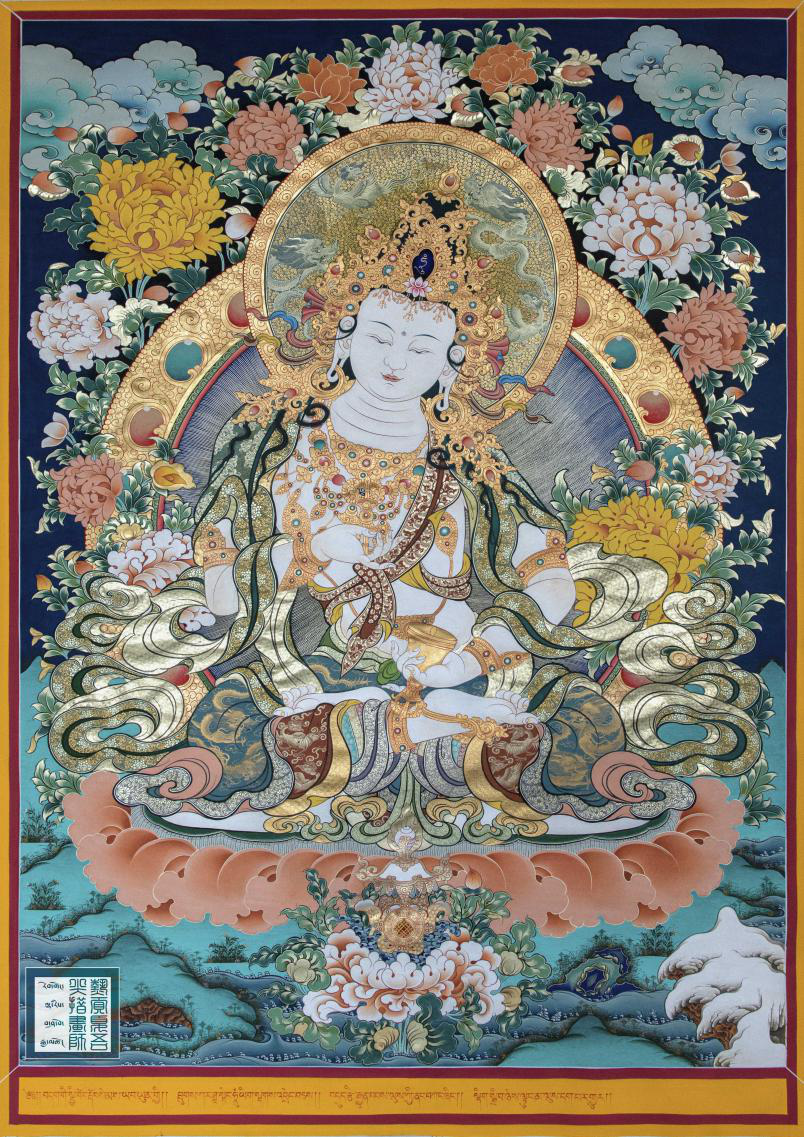 金剛薩埵,梵文Vajrasattva 或Vajrasattva mahāsattva,音譯哇指拉薩特哇摩哈薩特哇,譯名執(zhí)金剛,持金剛,金剛手,金剛手秘密主,金剛薩埵,金剛手菩薩摩訶薩,金剛手薩埵摩訶薩埵等。薩埵者有情之義,勇猛之義,總言勇猛之大士?!饎偹_埵’一語,象征‘堅固不壞之菩提心’與‘煩惱即菩提之妙理’。此名稱于密教中,所指有四::(一)指密教傳法之第二祖。(二)為金剛界曼荼羅中,金剛部院三十七尊之一。(三)為金剛界曼荼羅理趣會中,十七尊中之主尊。(四)為胎藏界曼荼羅金剛部院‘大智金剛部’之主尊。Vajrasattva (梵音之羅馬字轉寫形式))由Vajra和Sattva兩個詞組構成。Vajra漢文音譯的寫法之一是跋折羅,漢文意譯:金剛?!督饎傢斀?jīng)疏一》釋義:“世間金剛有三種義:一不可破壞,二寶中之寶,三戰(zhàn)具中勝”。Sattva漢文音譯薩埵,意為有情,其世間之義泛指一切有情;mahāsattva 意譯為大士,出世間之義是勇猛大士。Vajrasattva漢譯金剛薩埵,是佛教典籍中與普賢菩薩同體異名的圣尊。釋迦牟尼佛曾在經(jīng)典中說有三部佛、五部佛、千部佛乃至無數(shù)諸佛,而其中的主尊就是金剛薩埵,就象一個王國中有國王、大臣、平民等各式人等,但其中最尊貴的是國王一樣,金剛薩埵是“如海諸部壇城主”。禮敬金剛薩埵的咒語為“南無 谷乎 哇指拉 薩特哇耶”,梵文 Namo Guru Vajrasattvāya。意思是:向眾生依祜之主金剛薩埵圣尊致以皈依的敬禮! “南無俱盧跋折啰薩埵耶”是用繁體漢字音譯的梵語。南無:讀音 na-mo,皈命之義;俱盧:讀音 guru,眾生依祜之主、圣尊之義;跋折啰薩埵:讀音 ban-zer-sa-duo,金剛薩埵圣號;耶:讀音 ya,起增上語義之作用。全句譯成現(xiàn)代漢語的意思是:向眾生依祜之主金剛薩埵圣尊致以皈依的敬禮。