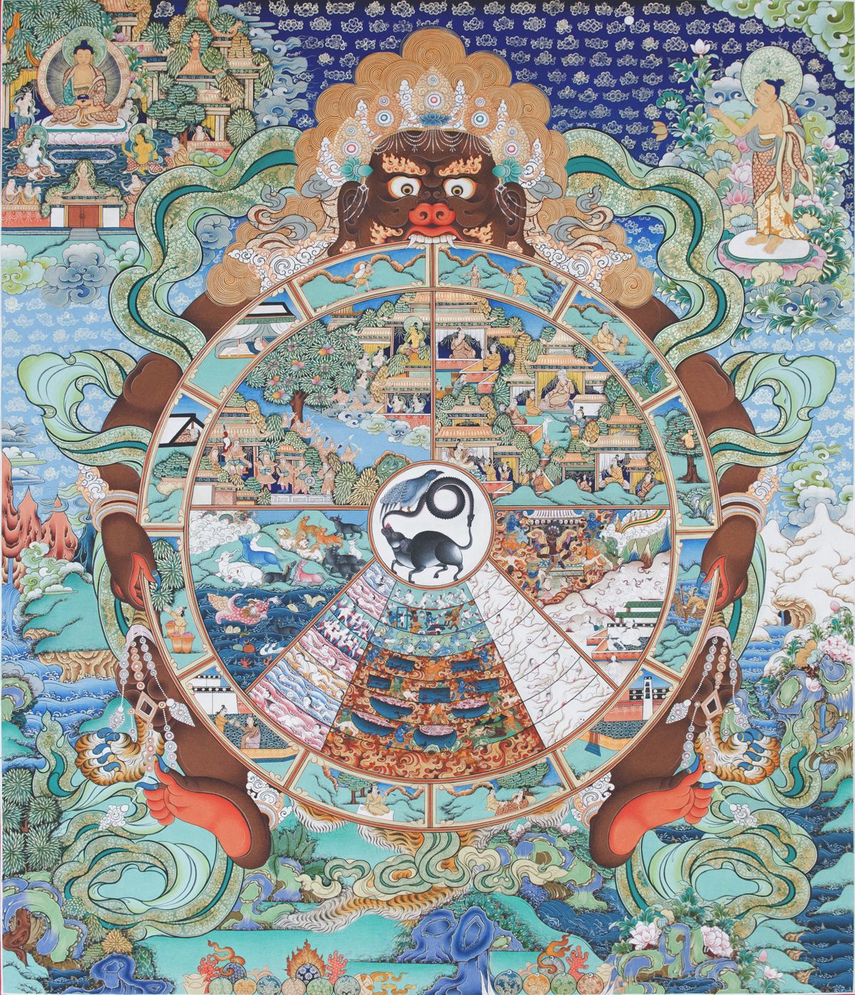 一切有情,皆以諸欲因緣,自作自受,如車輪回轉(zhuǎn)不已,生死于六條道趣,接受制裁。所謂六道,即:人、天(化生)、阿修羅(魔)、地獄、餓鬼、畜生(三惡道)。然在六道中,卻以人道為中心,因人心的善惡觀念而隨心所欲的去追求,造成報(bào)果。如人在日常中的語(yǔ)言、動(dòng)作、思想,守法實(shí)踐持三戒(五戒:不殺生、偷盜、邪淫、妄言、飲酒)以上者,可得六根整然的人身,五戒圓備者,即生大富大貴之家,長(zhǎng)壽而揚(yáng)名于世。修持五戒,加行十善(身:不殺生、偷盜、邪淫??冢翰粣嚎?、妄言、綺語(yǔ)、兩舌。意:不貪、瞋、癡。),即生天界,天分為欲界天、色界天、無(wú)色界天。上述五戒加十善,乃生欲界天,再加修正觀坐禪,證初禪至四禪,即生色界天。趨入四空定,即生無(wú)色界。但雖至非想非非想天,還是降伏業(yè)惑而已,無(wú)法脫離生死輪回,故古人說(shuō):三界無(wú)安,猶如火宅。如果人于日常生活中,雖有十善心布施,但帶有名利好勝,即生阿修羅界(須彌山腰),阿修羅是具天福而缺天德,因地污曲所致。如果人于日常中,失去道德戒行,生起慳貪心,即墮餓鬼道界,生起瞋癡心,即墮畜生界,犯五逆十惡者,即墮地獄界。以上釋義引自《君友會(huì)、六道輪回卷》綜上:六道輪回的善惡報(bào)趣,盡在人心的一念,能趨于善,即上升天界,起一念惡,即墮惡道,因果昭彰。
