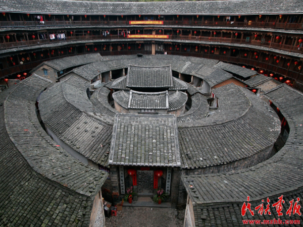位于永定縣高頭鄉(xiāng)的客家土樓承啟樓建成于清代康熙年間,因為動工時間都艷陽高照、天公作美,所以又被稱為“天助樓”。同時,承啟樓是福建現(xiàn)存的最高大、古老的圓樓,也是文化內(nèi)涵最豐富的一座土樓,所以又被稱為“土樓王”。