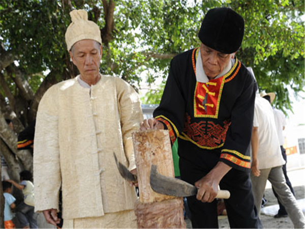 黎族樹皮布制作技藝:黎族制作樹皮布的歷史悠久,樹皮布是人類衣物從無紡布向有紡布發(fā)展的歷史見證。據(jù)考古學(xué)家研究,海南島樹皮布的歷史約有4000年。延續(xù)了數(shù)千年的樹皮布,記載了人類發(fā)展的歷程。盡管樹皮布已失去了它往日的作用,可是黎族人民卻不能忘記祖輩傳承下來的技藝。如今在哈方言、潤(rùn)方言黎族中,有些家庭將制作樹皮布的技藝代代相傳,他們的子孫仍能識(shí)別制作樹皮布的樹種,并能掌握制作樹皮布的技術(shù),這對(duì)研究黎族早期無紡布有著重要的意義。然而,目前整個(gè)海南省掌握樹皮布制作技藝的民間藝人不足5人。