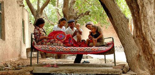 走進火焰山的時候,你就會發(fā)現(xiàn)一種奇怪的現(xiàn)象:家家戶戶的門口或者院落里的葡萄架下,多擺放著一兩張鐵床或木床,甚至有的慶就擺在水渠旁邊。游客會驚奇地部:這是人們睡覺的床嗎?是的,因為吐魯番太熱了,夜里大家都喜歡在房外睡覺,外面夜風(fēng)涼爽,又沒有蚊子咬,當?shù)孛耧L(fēng)淳樸,素來有“夜不閉戶、路不拾遺”的好風(fēng)尚,所以人們都放心 在屋外睡覺,一覺能睡到日上三竿。你看到的這種“鐵床擺在大門外”的情景,在吐魯番的許多鄉(xiāng)村,甚至在吐魯番市區(qū)內(nèi),都是人們司空見慣的。
