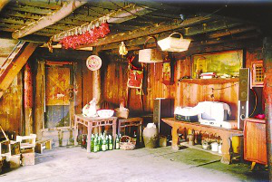 筆者看到的干欄式木樓和吊腳樓在使用的功能上相差無幾,上層住人待客,樓下四壁用木板圍擋,圈養(yǎng)畜禽,存放燒柴、農(nóng)具和秋收臨時堆放的糧食。豬圈靠里側(cè)依柱圍欄,其它空閑的地方打掃得干干凈凈,有的將織布機放在樓下明亮的地方。住房一般5間,兩頭兩間是偏廈,中間3間是寬敞的堂屋,一頭設(shè)火塘、土灶,為烤火、煮飯之處;另一頭的中柱供臨時設(shè)席敬神之用,也有的在板墻上設(shè)佛龕神位,供奉祖先;臥室依房柱用木板靈活隔間。大門有的開在房山墻一側(cè),也有開在中間的,皆登石階、板梯而上。吊腳樓一棟挨著一棟,小巷道曲折狹窄,只容牽牛和順向挑擔(dān)通過。