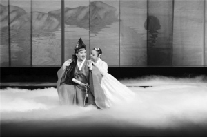 中國朝鮮族唱劇《春香傳》劇照:春香與李夢龍。 資料圖片