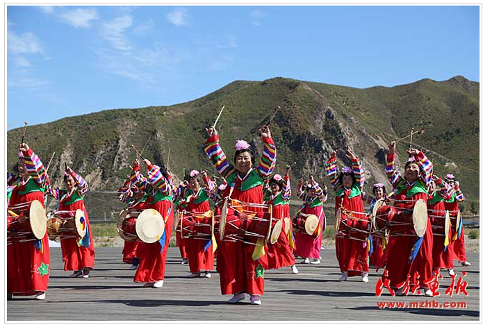 圖們市,隸屬于吉林省延邊朝鮮族自治州,位于吉林省東部,長(zhǎng)白山脈東麓。圖們市的圖們江廣場(chǎng)環(huán)境幽雅,綠樹(shù)成蔭,廣場(chǎng)內(nèi)鼓聲隆隆、彩裙飄飄,近百位身著朝鮮族服裝的老人們斜挎長(zhǎng)鼓,翩翩起舞。鼓聲的鏗鏘映襯老人綻放的笑臉,一種“延邊特色”的幸福感便撲面而來(lái)。與朝鮮南陽(yáng)市隔江相望的圖們江畔第一城圖們市以民族傳統(tǒng)文化為媒,奏響了文化興邊新樂(lè)章。
