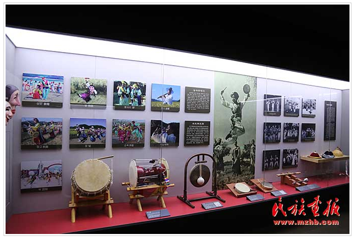 介紹農(nóng)樂(lè)舞的展示區(qū)。中國(guó)朝鮮族農(nóng)樂(lè)舞,是世界級(jí)非物質(zhì)文化遺產(chǎn)