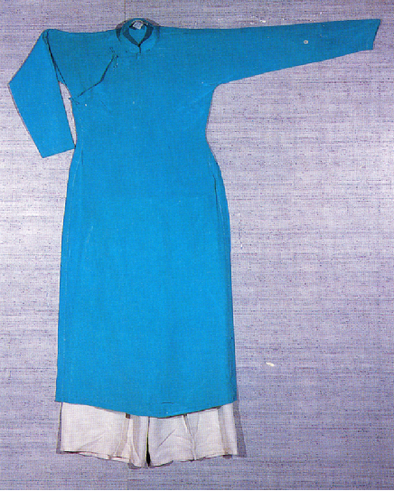 在古籍資料《防城縣志》中這樣記載:“安南人的服裝,男衫長過膝,窄袖袒胸,腰間束帶;女衫長不遮臀,褲闊……”從此項描述中可以大致知道京族早年傳統(tǒng)服飾的概況。