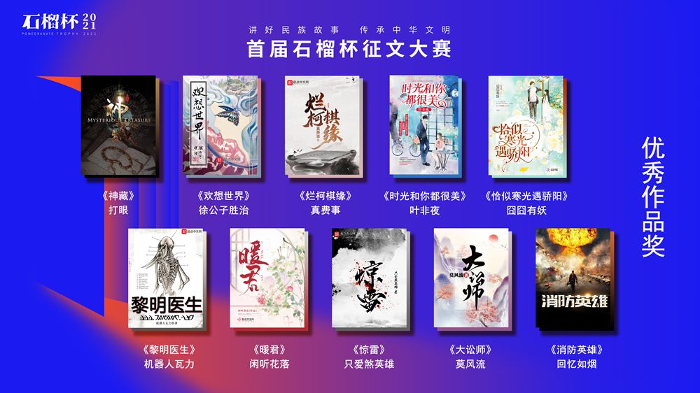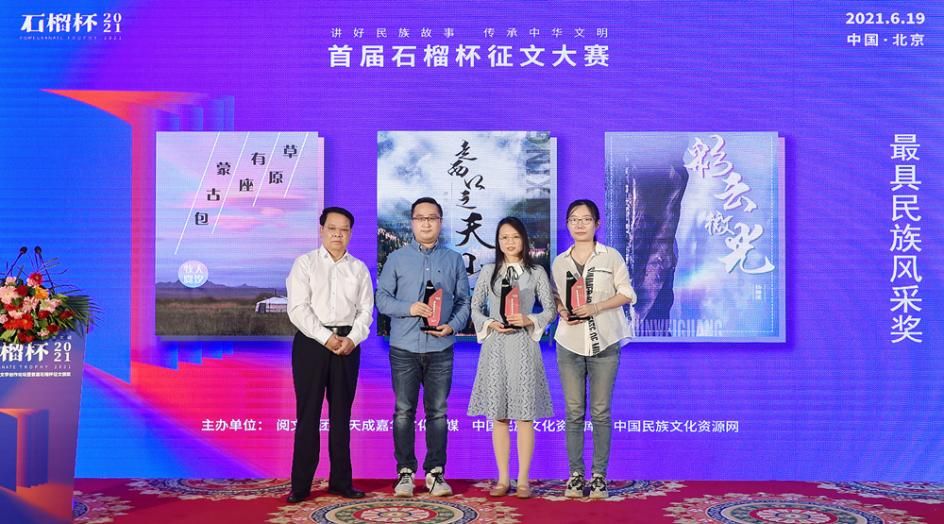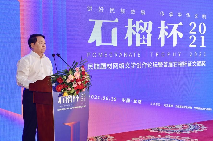 6月19日,民族題材網(wǎng)絡(luò)文學(xué)創(chuàng)作論壇暨首屆石榴杯征文大賽頒獎典禮在京舉行。作為國家民委主辦的“中華民族全家?!毕盗谢顒又?,首屆石榴杯征文大賽得到了國家民委文化宣傳司和中國少數(shù)民族文化藝術(shù)促進會的指導(dǎo)與支持,由閱文集團聯(lián)合天成嘉華文化傳媒、中國民族文化資源庫、中國民族文化資源網(wǎng)共同舉辦。本屆大賽以“講好民族故事 ,傳承中華文明”為主題,涌現(xiàn)出眾多弘揚民族精神、表達(dá)文化自信、傳播正能量的作品。經(jīng)過專家推薦及嚴(yán)格評審,《草原有座蒙古包》、《走西口之天山行》、《彩云微光》等三部作品獲“最具民族風(fēng)采獎”,《神藏》、《歡想世界》、《爛柯棋緣》、《時光和你都很美》、《恰似寒光遇驕陽》、《黎明醫(yī)生》、《暖君》、《驚雷》、《大訟師》、《消防英雄》等十部作品獲“優(yōu)秀作品獎”。所有獲獎作品都將收錄入中國民族文化資源庫。中國作家協(xié)會副主席、書記處書記吉狄馬加表示,本屆石榴杯大賽是在黨和國家長期以來堅持的對民族文化、少數(shù)民族作家創(chuàng)作和民族題材創(chuàng)作的大力扶持下,依托網(wǎng)絡(luò)文學(xué)平臺,將文學(xué)作品與影視作品改編、游戲、動漫產(chǎn)品制作結(jié)合起來,探索的一條發(fā)展民族文化的新路,具有開創(chuàng)意義。
