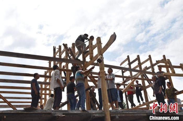 2001年,劉安喜跟著妻子到寧波做工,隨后在工廠老板的牽線下,他在寧波修建涼亭和吊腳樓等古式建筑。而40多年來(lái),劉安喜在湖北利川、咸豐、恩施和浙江寧波等地,共修建了200多座吊腳樓。
