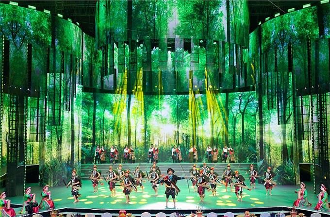 在舞美上,晚會傾力打造中華文化概念,突出鑄牢中華民族共同體意識,建構熱烈祥和的觀演環(huán)境、身臨其境的現(xiàn)場體驗、自然流暢的互動場景,以更炫麗、更時尚、更具生命力的節(jié)目內容和形式,為觀眾提供技術與藝術完美結合的視聽盛宴。主創(chuàng)人員別具匠心地把舞臺設計成一個具有民族特色的大客廳,寓意各族兄弟姐妹溫暖團聚,營造既有民族特色又有時代氣息的視覺空間。