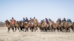 在內(nèi)蒙古自治區(qū)錫林郭勒盟正藍旗舉行第十六屆“渾善達克”冬季那達慕。在近零下30攝氏度的嚴寒中,當?shù)孛癖娚碇晒抛迨⒀b,騎著馬、趕著駱駝、開著汽車從各地趕到會場,進行賽馬、賽駱駝、射箭等蒙古族傳統(tǒng)活動。