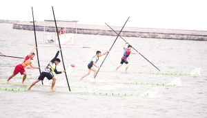 獨(dú)竹漂比賽是直道競速項目,運(yùn)動員站在竹漂上,利用手中的竹竿劃水前進(jìn),以抵達(dá)終點(diǎn)的先后次序決定名次。本屆獨(dú)竹漂比賽分為男子直道競速和女子直道競速兩大項,設(shè)有60米、100米、200米距離的小項,有13支隊伍參加。其中,河南隊為首次參加。