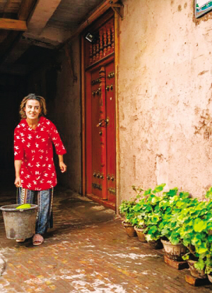 現(xiàn)代都市里的建筑多是封閉戶型,高臺民居則是半封閉的,一扇門封閉的是平視空間,但在平臺上可同時與比鄰的幾家相互通話。這種建筑本身就具有一種人情味,也就是說,喀什高臺民居是以群體的人文思想筑建房屋的。和睦的群體在房屋構建時互相為鄰,一道墻壁兩家共用,一座過街樓閣成為幾家相互往來的空中過街橋,如果不是那種融洽的鄰里之情,高臺民居的特色也就蕩然無存了。
