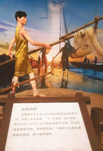 廣西東興市京族文化傳承與保護中心展出的京族捕撈傳統(tǒng)——高蹺撈蝦,也就是現(xiàn)在學生們學習的高腳罾。記者 龐革平攝