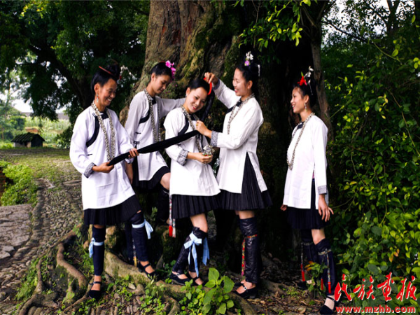 夏天,侗族婦女脫下藍(lán)黑色的亮布上衣,換上涼爽的白衫