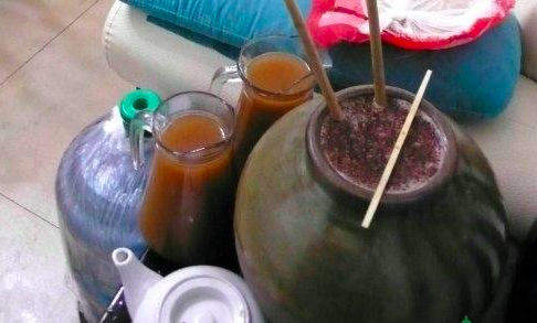 飲用時(shí),將甕口打開,注入開水(冬季用溫開水,夏季用涼開水),然后插入竹管吮吸。竹管以水竹為佳,竹管的長(zhǎng)短以甕壇的大小而定,無節(jié)者最佳;如果有節(jié),則事先打通。飲時(shí),在場(chǎng)者沿酒甕圍坐一圈,由年長(zhǎng)者最先飲,然后再由左而右,依次輪轉(zhuǎn)。酒汁吸完后可再?zèng)_入涼(溫)開水,直至淡而無味時(shí)為止。咂酒一經(jīng)開壇,剩酒無論濃淡,均不再飲用。