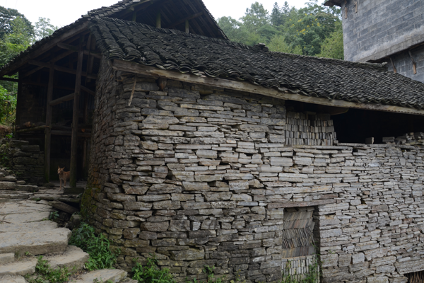 石板房以石條或石塊砌墻,墻可壘至5至6米高;以石板蓋頂,風(fēng)雨不透??傊?,除檁條、椽子是木料外,其余全是石料,甚至家用的桌、凳、灶、缽都是石頭鑿的。一切都樸實無華,固若金湯。這種房屋冬暖夏涼,防潮放火,相對采光較差。