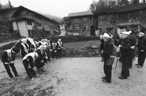 懷著對(duì)“度戒”的好奇和向往,從1月1日開始,盤文儀和其他 “受戒者”一道經(jīng)歷了起法名、請(qǐng)師傅、豎刀梯等十多天的緊張準(zhǔn)備。之后,在師傅的帶領(lǐng)下,連續(xù)三天三夜馬不停蹄地進(jìn)行了封齋、架龍門、掛神像、接香、接圣、請(qǐng)圣、點(diǎn)大羅明燈、游兵等儀式。同時(shí),通過聽師傅頌讀經(jīng)文,接受了族史、族規(guī)、禮儀、道德等傳統(tǒng)教儀,還經(jīng)歷了上刀梯、抓燒紅的犁頭、踩燒紅的磚頭等考驗(yàn),最終成功過關(guān)。