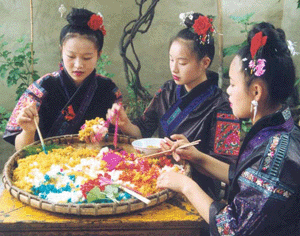 侗族分布于貴州、湖南、廣西三省毗鄰地區(qū)的南方少數(shù)民族,居住在黔、湘、桂等省區(qū)的毗連地區(qū),其中以貴州省人口最多。古代文獻中稱“駱越”、“僚”、“侗蠻”。他們主要從事山壩農(nóng)業(yè),兼營林業(yè)和漁獵,手工業(yè)發(fā)達。出產(chǎn)“香禾糯”(有“糯中之王”之稱)、“稻花鯉”、油茶。