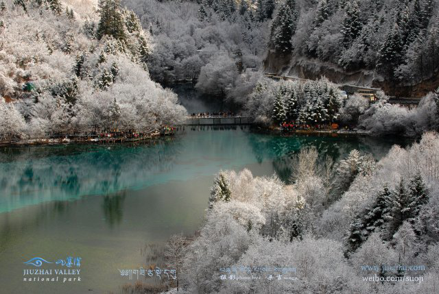 九寨溝位于四川省西北部岷山山脈南段的阿壩藏族羌族自治州九寨溝縣漳扎鎮(zhèn)境內,年均氣溫6—14℃度,冬無嚴寒,夏季涼爽,四季景色各異:仲春樹綠花艷,盛夏幽湖翠山,金秋盡染山林,隆冬冰塑自然。以翠湖、疊瀑、彩林、雪峰、藏情、藍冰“六絕”著稱于世。