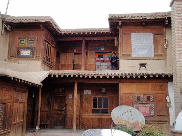 為改善狹小的寨內(nèi)空間,當?shù)鼐用窬藿硕幽窘Y(jié)構樓房,和青海鄉(xiāng)村民居庭院寬敞的特點形成了反差。寨內(nèi)民居庭院多為四合院式,房屋為土木結(jié)構平頂房,一般民居都有飛椽花藻之類。屋內(nèi)一般以木板作隔扇,室內(nèi)有護炕木板、護墻木板墻圍,且多雕花草于其上。房屋一般面闊三間,正面以木板隔墻并裝上木板條方格小花窗。佛堂設在二樓,佛堂所在的房屋一般都是上房,和佛堂不同向的兩邊廂房一般做臥室。院落中央一般都有豎掛經(jīng)幡的旗桿,還設有桑臺,具有明顯的藏式特點。