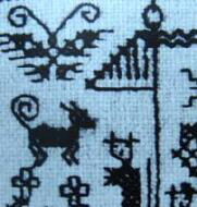 挑花(又叫十字挑花)是滿族民間刺繡中廣為流傳的一種針法。用交叉的十字組成抽象的圖案,粗獷簡潔,是人們?nèi)粘I钣闷分械闹饕b飾圖案,色彩比較單一,后來發(fā)展為復雜的十字繡。