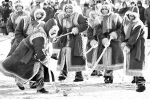 其實,曲棍球在中國的歷史也是十分悠久的。我國有關曲棍球運動的記載,早在唐代就有了,那時曲棍球叫“步打球”。唐朝詩人王建曾賦詩描寫宮女們在寒食節(jié)這天,在宮殿前給皇帝表演打曲棍球的情景:“殿前鋪設兩天樓,寒食宮女步打球。一半走來爭跪拜,上棚先謝得頭籌。”在北宋,曲棍球有了另外一個名字——“步擊”。到了遼代,曲棍球運動開始在契丹人中盛行,《遼史》中稱之為“擊鞠”。遼代以后,曲棍球運動在我國其他民族中逐漸消失,而作為契丹人后裔的達斡爾族,卻始終保持著這一古老的傳統體育活動。