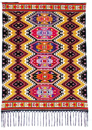 在長(zhǎng)期的藝術(shù)實(shí)踐中,葉水云感到自己的專(zhuān)業(yè)美術(shù)水平有限。于是,她考入鳳凰職業(yè)中專(zhuān)學(xué)習(xí)美術(shù)專(zhuān)業(yè),并被留校任教,后又在湘西州教育學(xué)院進(jìn)修大學(xué)美術(shù)專(zhuān)業(yè)?!巴良铱楀\沒(méi)有草稿,最重要的一個(gè)環(huán)節(jié)就是配色。以前配色沒(méi)有理論指導(dǎo),主要從個(gè)人感覺(jué)出發(fā),喜歡紅、綠等艷色系。除了講究圖案平整以外,配得好不好自己也不清楚。學(xué)習(xí)后才慢慢認(rèn)識(shí)到,配色應(yīng)注重冷暖色調(diào)的對(duì)比與襯托?!彼?,葉水云織出來(lái)的“西蘭卡普”色彩更為統(tǒng)一調(diào)和,艷而不俗,粗獷中有細(xì)節(jié),大氣中有精巧,看上去更加舒服。