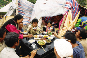 蘿卜寨村民一家震后的晚餐  陳鼎波/攝