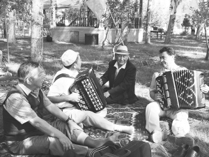 海扎托拉(右一)和朋友們一起拉手風(fēng)琴