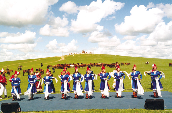內(nèi)蒙古烏蘭牧騎的演員,吹拉彈唱跳,幾乎個個是多面手。從以前騎馬下鄉(xiāng)到現(xiàn)在坐車下鄉(xiāng),方式雖然有變,但為農(nóng)牧民演出的熱情沒有變。鄂溫克自治旗烏蘭牧騎在當(dāng)?shù)貫檗r(nóng)牧民演出都是公益性的,一年最少也有100多場。但自然地,由上級指派、旅游接待、大型晚會、出訪演出,則收一些相應(yīng)費用。全年下來300多場。他們的演出節(jié)目,一般都有舞蹈、獨唱、重唱、馬頭琴合奏、民歌聯(lián)唱等,包括《敖包相會》、《萬馬奔騰》等馬頭琴名曲,也有他們自己創(chuàng)作的《山林回想》、《鄂溫克大地》等獲獎歌舞劇目。