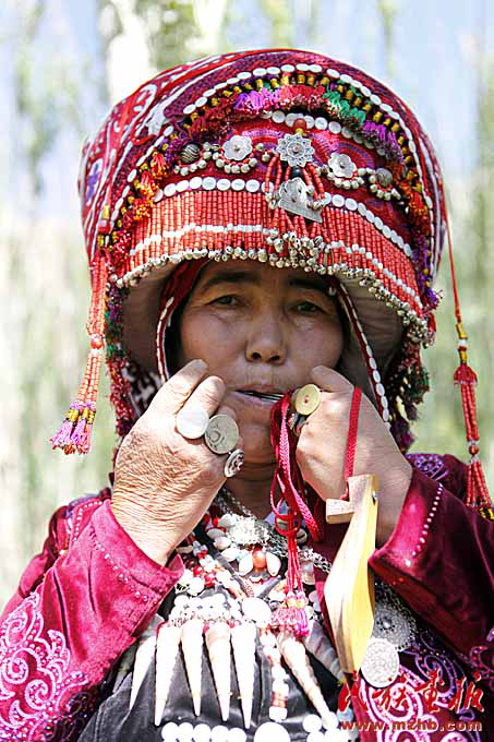 “奧孜庫姆孜”是同時用嘴吹和用手指彈奏的樂器,琴上只有一個小小的鋼片用來彈奏。這種樂器只有柳葉大小。演奏時,琴頭放入嘴里,抵于門齒之間,用食指彈奏鋼片,并同時在口腔內(nèi)呼吸運氣進(jìn)行吹奏。在彈奏和呼吸之間奏出婉轉(zhuǎn)美妙的樂曲,因此被稱為柯爾克孜族的“美妙之口”。