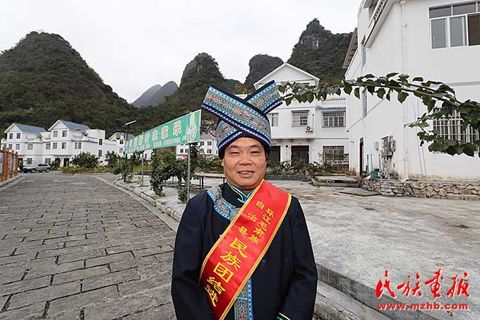 環(huán)江毛南族自治縣大安鄉(xiāng)可愛村黨支部書記覃福勇帶領村民移民搬遷進了新村