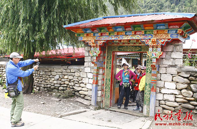 在珞巴族家門前留影紀(jì)念的游客絡(luò)繹不絕(列來(lái)拉杜 攝影)