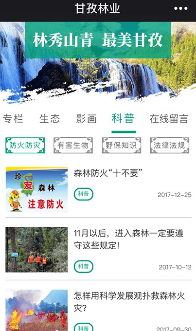 甘孜州林業(yè)局先后啟動(dòng)甘孜林業(yè)無(wú)線站點(diǎn)、甘孜林業(yè)微信平臺(tái)、甘孜林業(yè)頭條號(hào)及甘孜林業(yè)新浪微博的建設(shè)運(yùn)營(yíng),這些平臺(tái)推送均選取編輯與群眾生活息息相關(guān)、群眾喜聞樂(lè)見(jiàn)的資訊,旨在打造甘孜州林業(yè)局官方權(quán)威信息發(fā)布渠道,樹(shù)立新時(shí)代中國(guó)林業(yè)新媒體發(fā)展新形象。