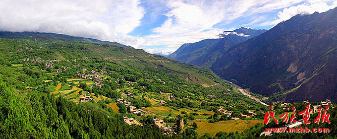 甘孜州東部的丹巴山寨體現(xiàn)了天人合一的理念,遠(yuǎn)遠(yuǎn)看去,充滿靈氣的山谷中,翡翠般的青草綠樹(shù)之中,是那沉甸甸的田地和隱在密林深處的寨房,伴著時(shí)有時(shí)無(wú)的潺潺溪流,一幅富有動(dòng)感的絕妙山寨畫卷隨之展示在你的眼前(民族畫報(bào)資料)