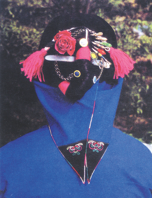 中原地區(qū)婦女恪守舊俗,逢年過節(jié)、婚慶喜禮必穿盛裝。盛裝的頭飾以銀簪花為主,多為彩蝶、鳳鳥、菊花、牡丹、喜鵲等,富家還在其上鑲寶石、玉或鍍金。簪花的下面巧裝一個彈簧,這樣,女子走動時,便會滿頭珠翠閃爍不定,眩人眼目,偶綴飾數(shù)串流蘇,垂于女子前額和雙鬢,更增添了女子的風(fēng)韻。