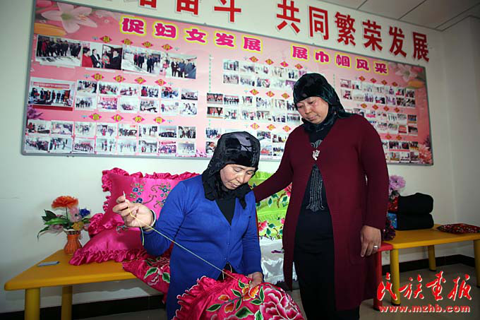 自精準(zhǔn)扶貧實(shí)施以來,東鄉(xiāng)縣婦聯(lián)依托“隴原巧手”等項(xiàng)目,在縣婦聯(lián)、坪莊鄉(xiāng)、布楞溝村、汪胡村等舉辦婦女刺繡培訓(xùn)班50余期,邀請專家指導(dǎo)教學(xué),并統(tǒng)一刺繡品樣式和質(zhì)量。把有基礎(chǔ)、感興趣的婦女發(fā)展成為培訓(xùn)骨干。馬阿英社的妹妹馬英英是骨干之一,她對記者說:“婦聯(lián)組織我們?nèi)ブ萆蠀⒓优嘤?xùn),用所學(xué)到的編織技術(shù)帶領(lǐng)貧困婦女發(fā)展,更好發(fā)揮‘傳幫帶’作用?!?/p>